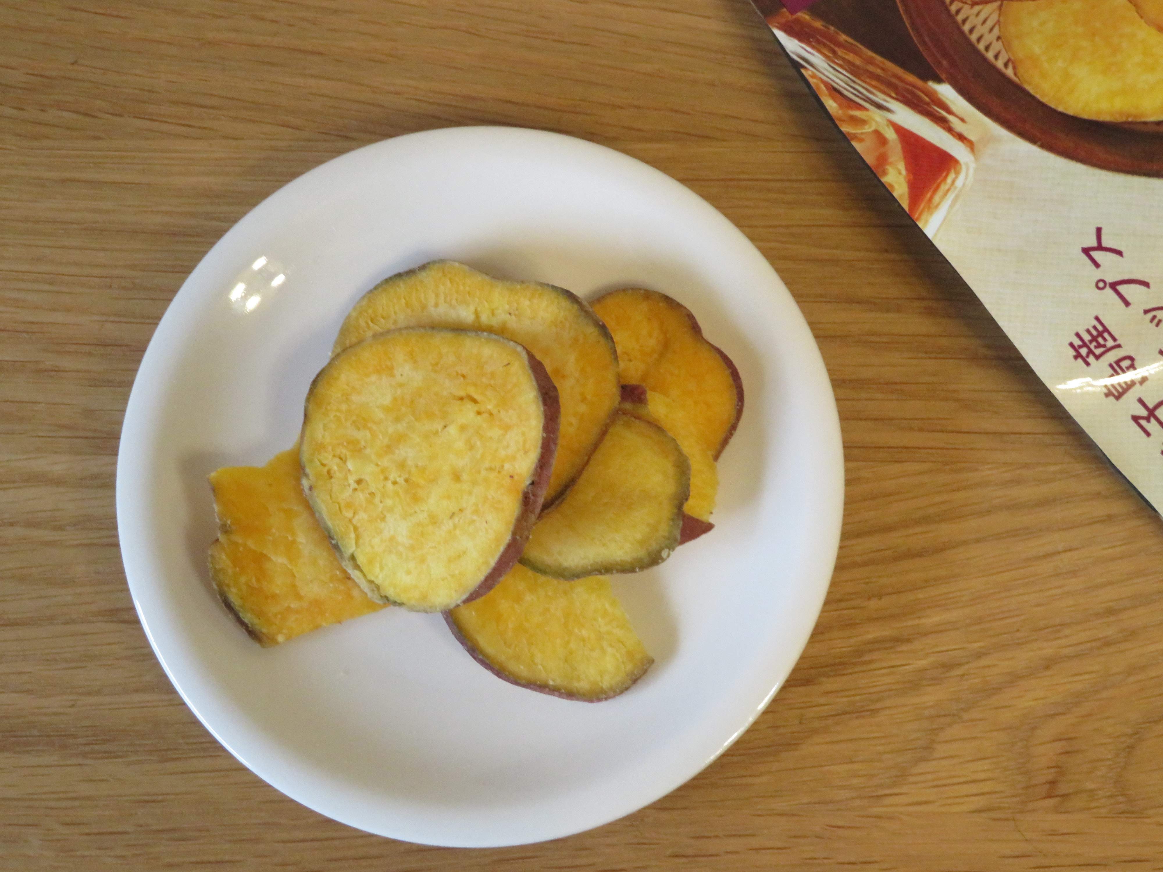 原材料はサツマイモと油だけ、まさに素材の味そのままの野菜チップス。