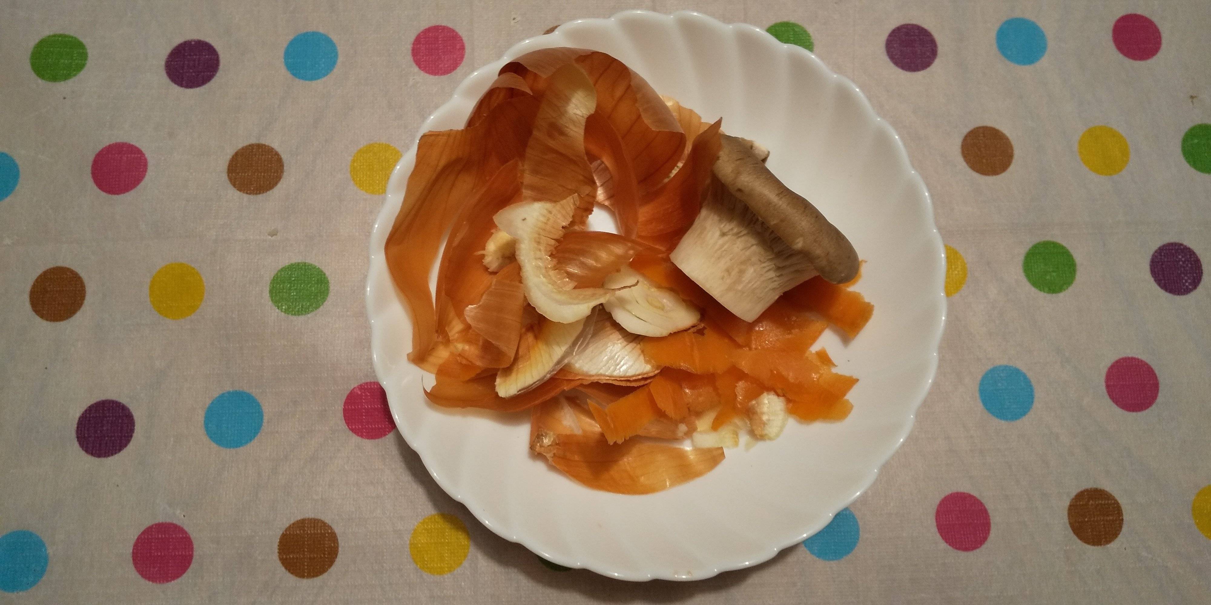 野菜の皮、ヘタ、根っこなどの野菜くずをまとめてジッパー付きの保存袋に冷凍保存である程度溜め、1~2週間に1度、それらをごく弱火で30分煮出し、ベジブロスを作っています。