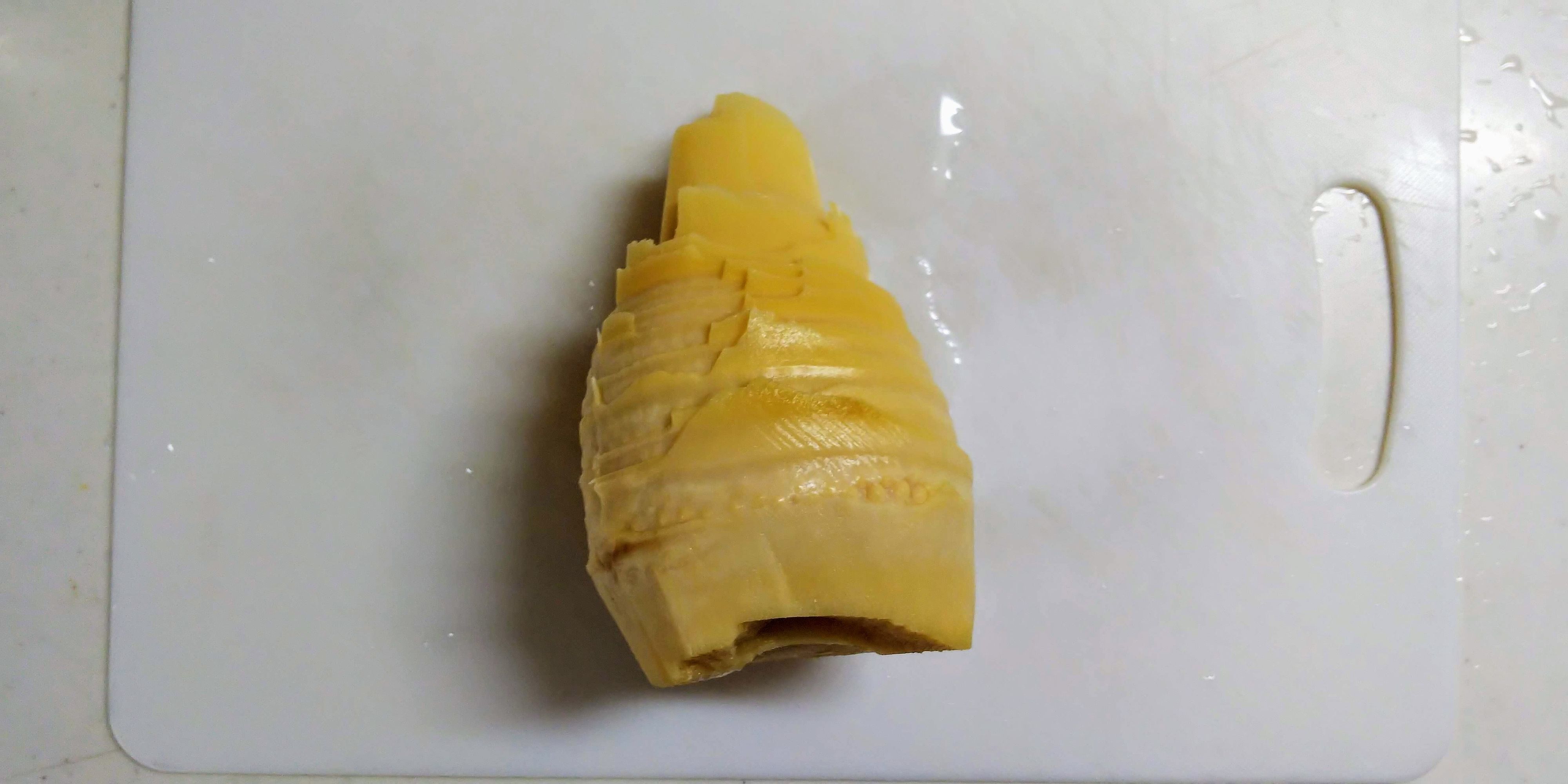 2、たけのこの根の部分は切り落とし、根元部分のぶつぶつしたところは大根のかつらむきの様に落とす