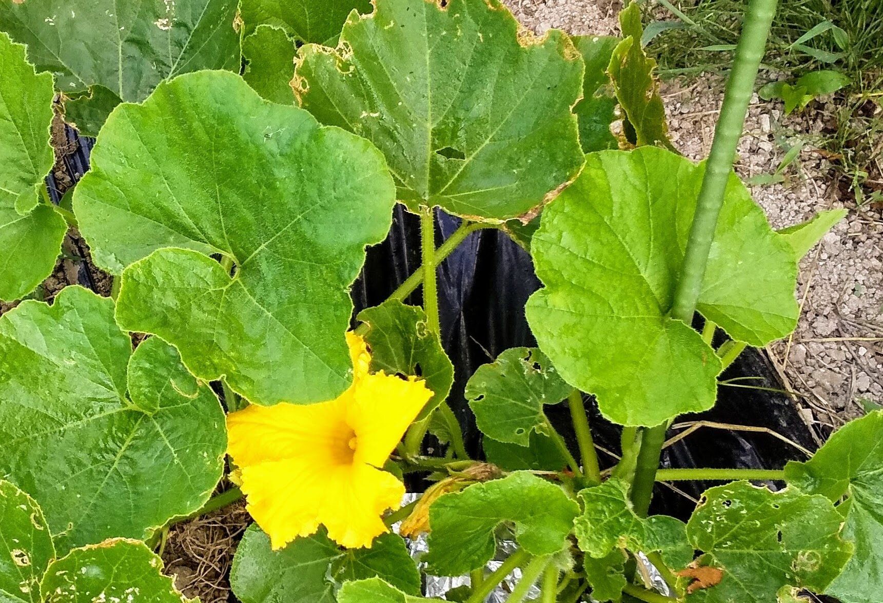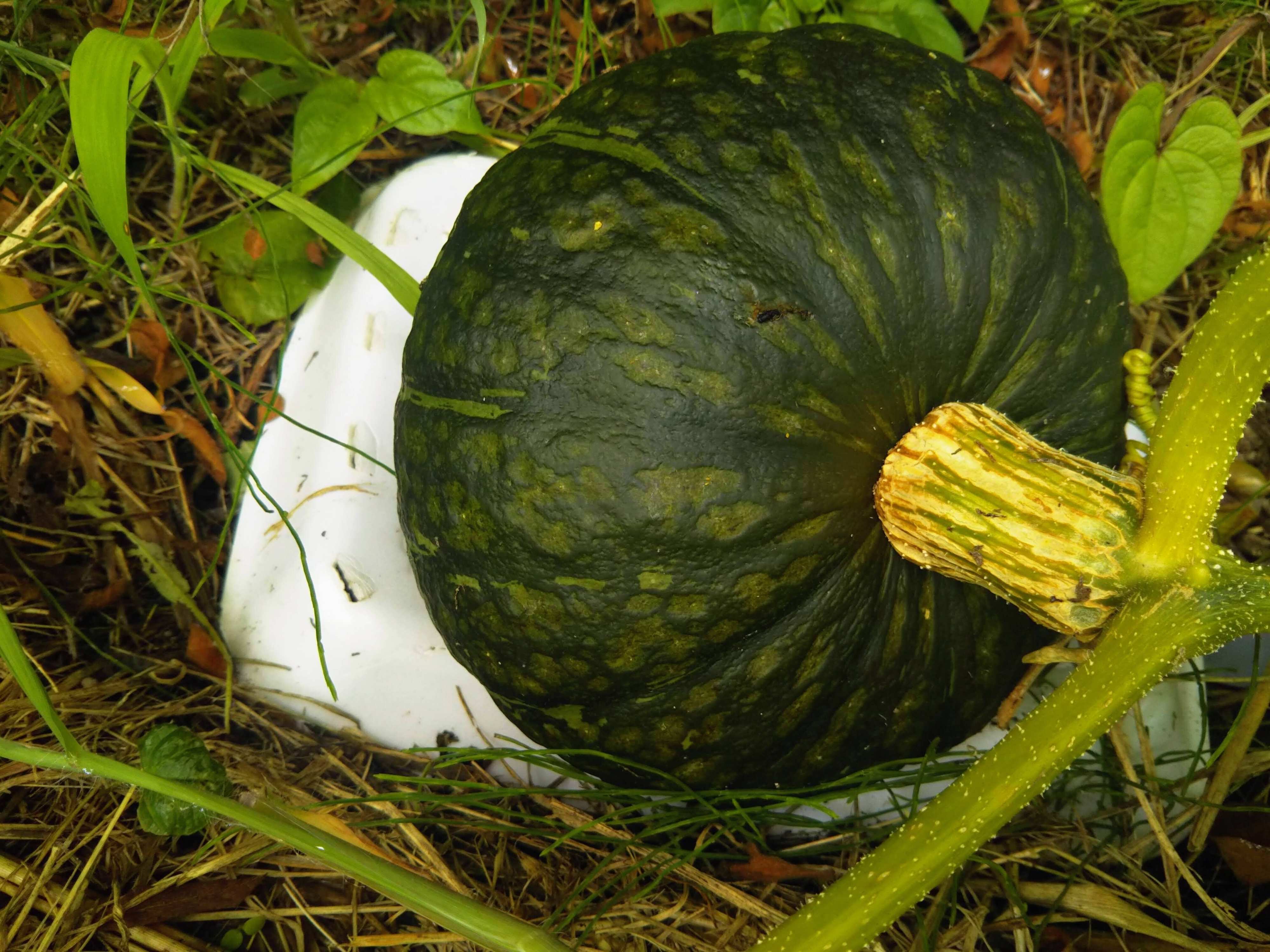 写真は、家庭菜園で育てたかぼちゃの収穫直前の様子です。