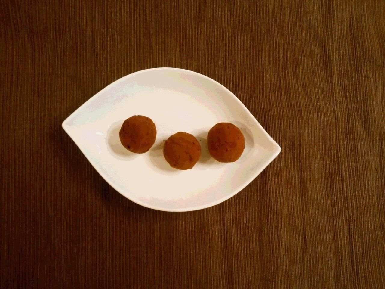 オーブントースターで焼き芋を作り、皮をむいてつぶしてまるめます。