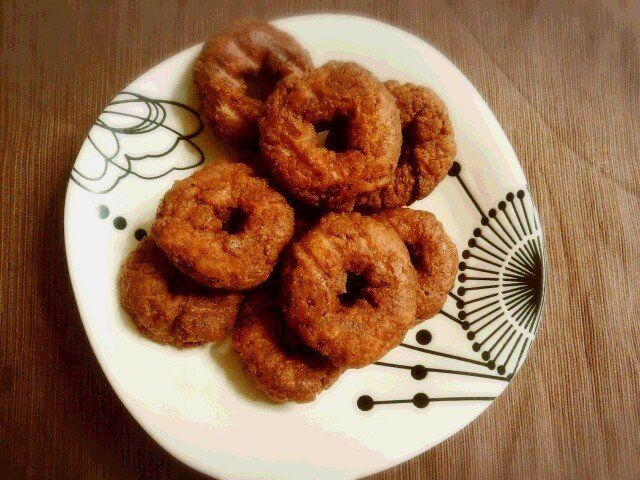 ホットケーキミックスと絹ごし豆腐を2:1の分量で混ぜ、ティースプーン3杯程度のピュアココアを入れて生地を作ります。