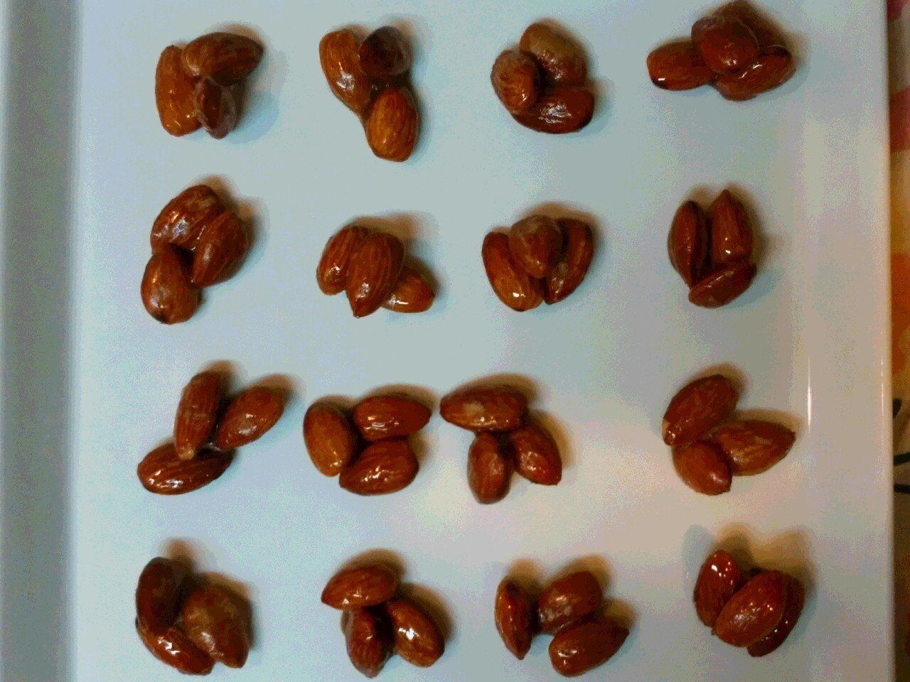 カラメルが熱いうちにアーモンドを入れてからめましょう。