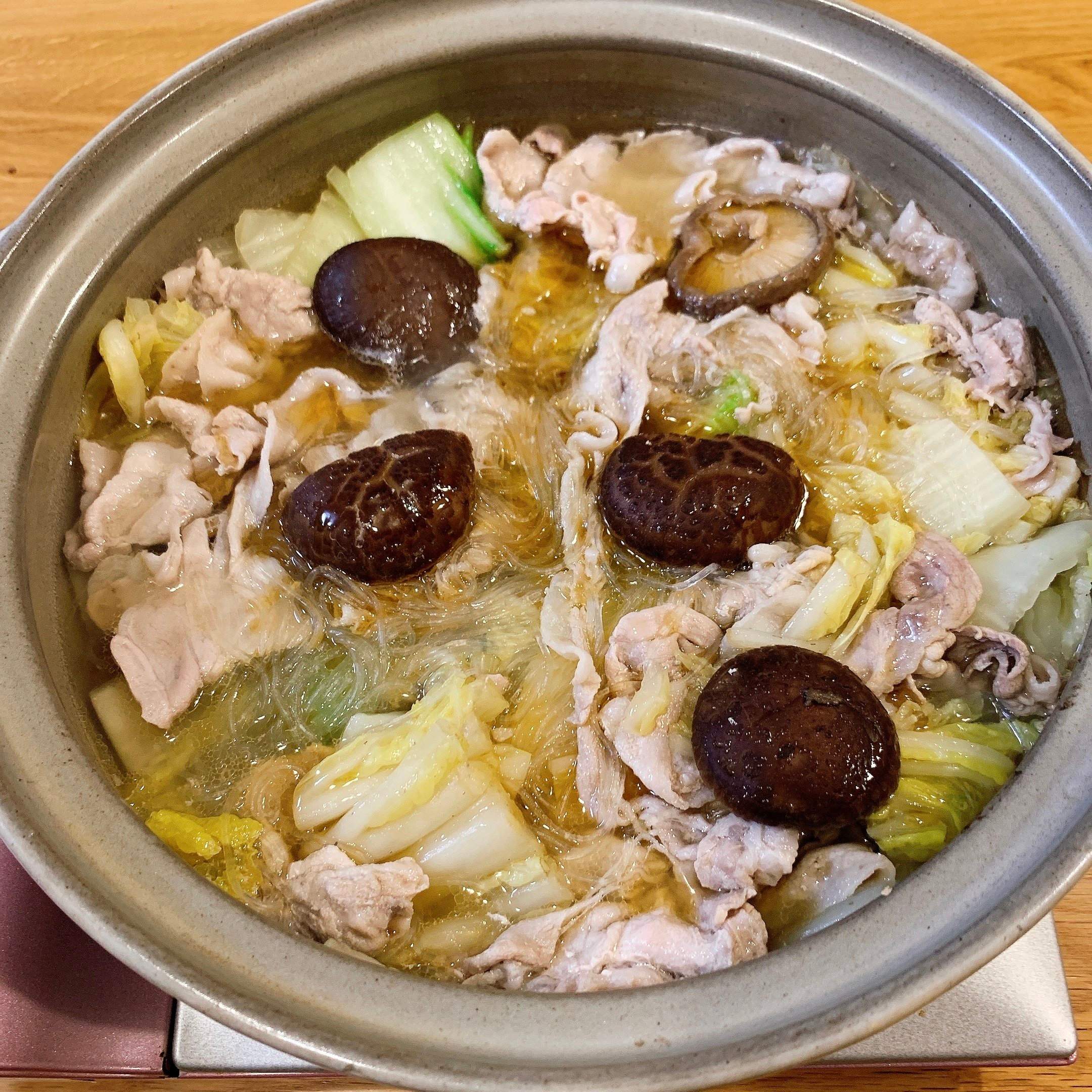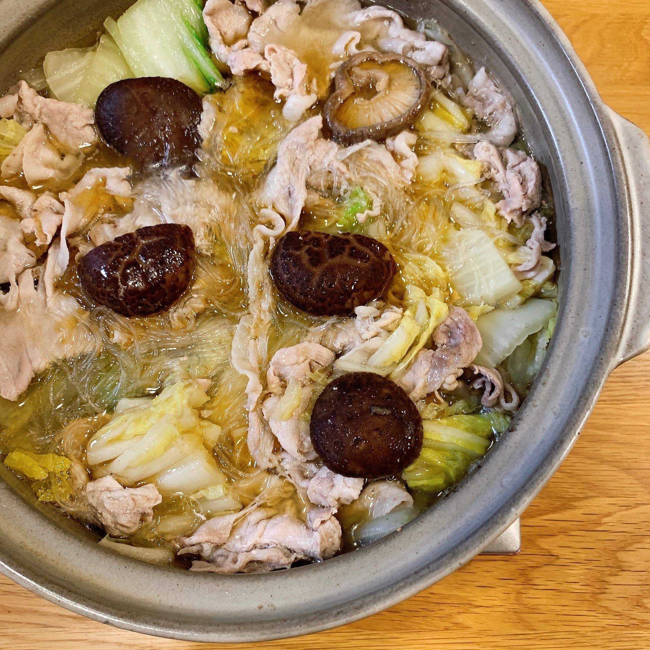 口に入れた瞬間にふわっと広がる干し椎茸とごま油の香り。じっくり煮込んだくたくたの白菜からじわ~っと滲み出るだしがたまりません。スープがほどよく絡んだ春雨はいくらでも食べられちゃいそうな美味しさ!