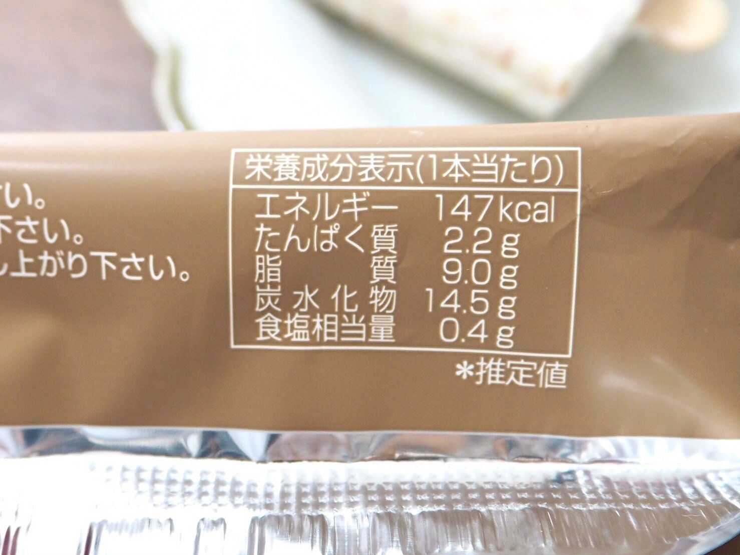 公式ホームページには濃厚・濃密と紹介されているので、もっと高カロリーかと覚悟していましたが、思ったよりもカロリーは低め。