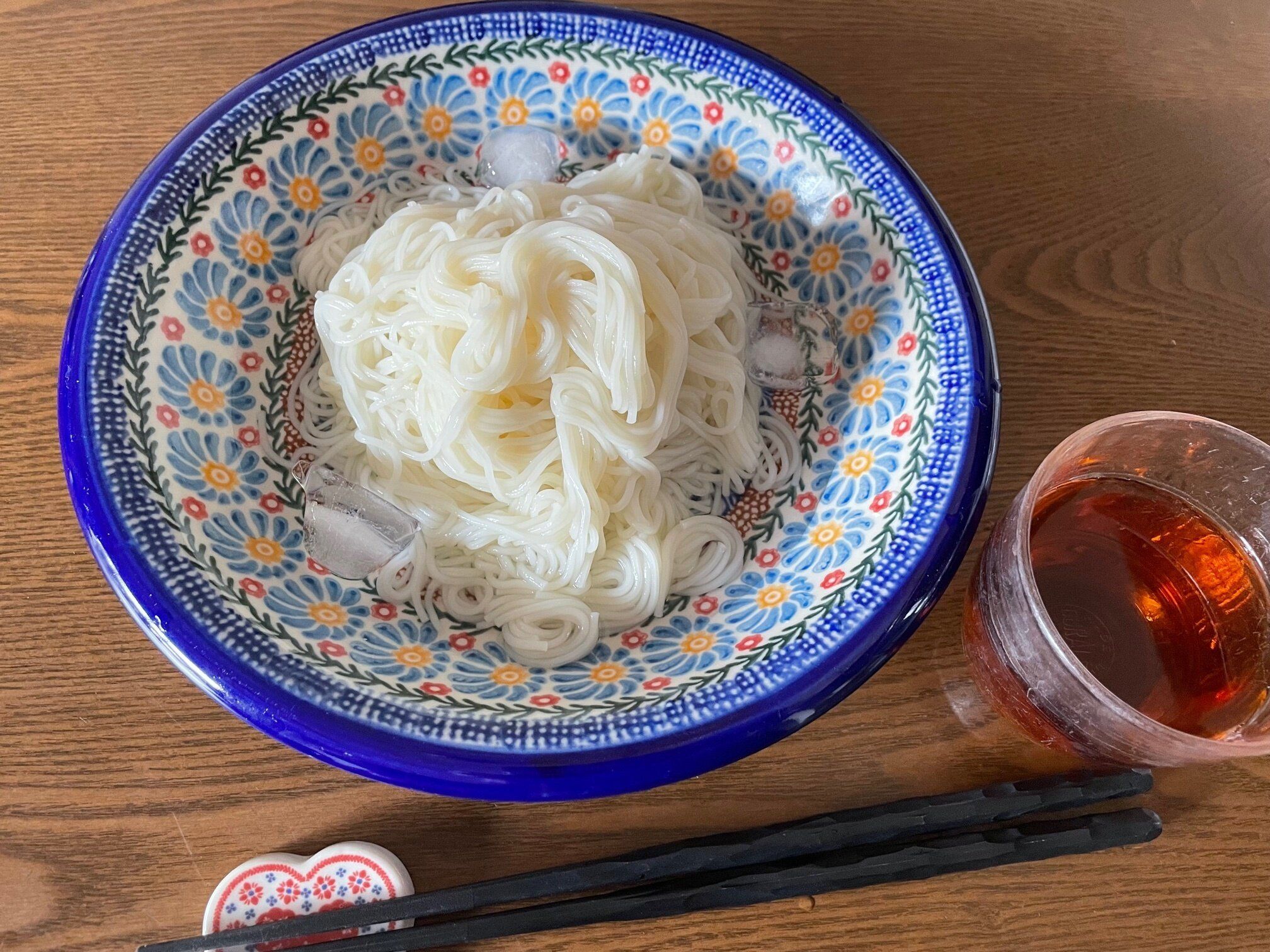 普通にゆでれば2分でゆであがるそうめん。5分かかっているので時間は長くなりますが、その間ほったらかしでいいので時間が有効活用できますね。