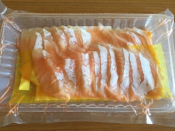 安すぎて大丈夫なの!?と思ってしまうほどですが、こちらはノルウェー産の養殖サーモン。こちらも冷凍なので解凍してからそのまま生食用としていただけます。