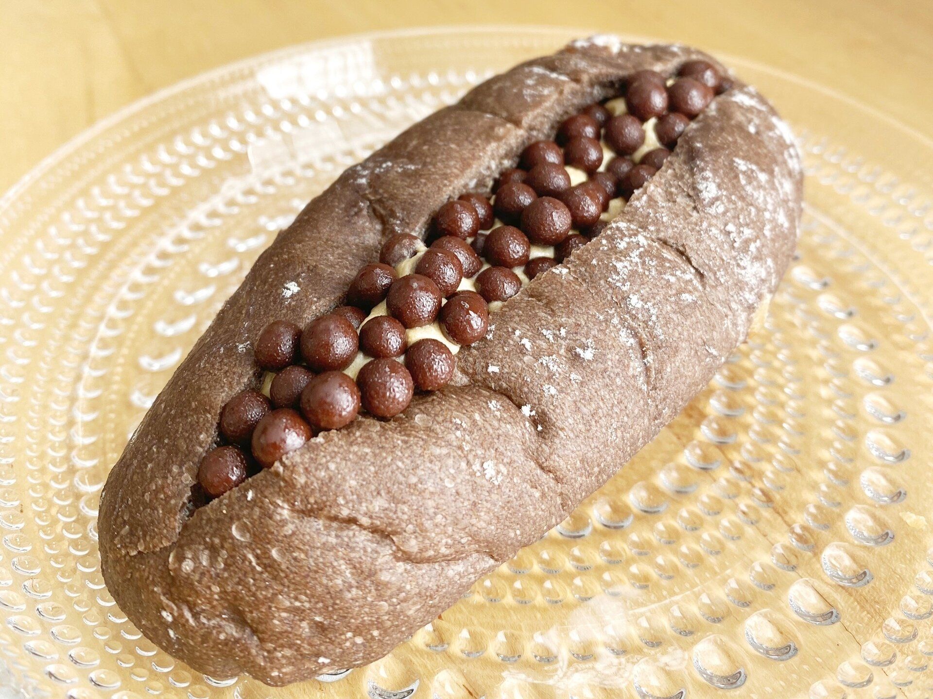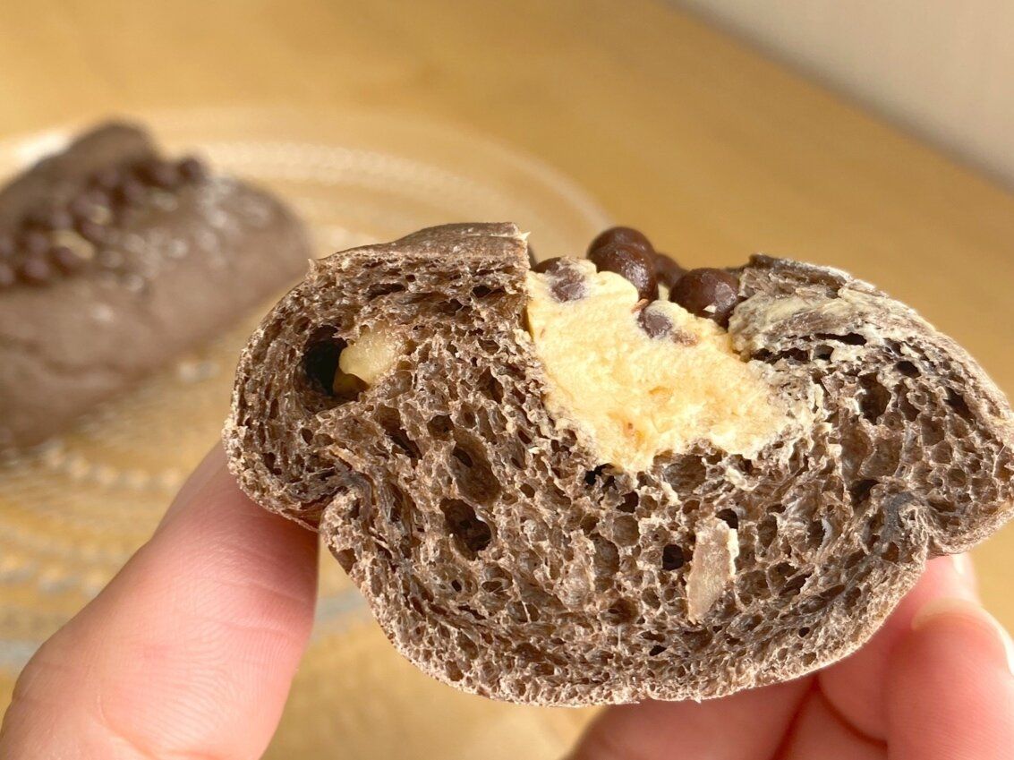 パン生地はしっかりと小麦粉の風味があり、チョコレートのビターな味わいをほんのり感じます。キャラメルクリームは甘い中にほろ苦さがあり、パールショコラの甘さと良いバランス◎。パン生地に練り込まれたクルミとパールショコラの食感がアクセントになっていて、食感とチョコレートの味わいを楽しめるパンに仕上っています。
