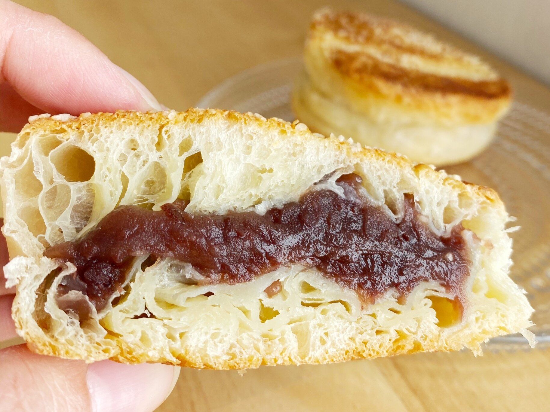 バターの風味豊かなデニッシュ生地はもちっとしつつも歯切れの良いタイプ。サンドされた粒あんは程よい甘さであと味がスッキリしています。