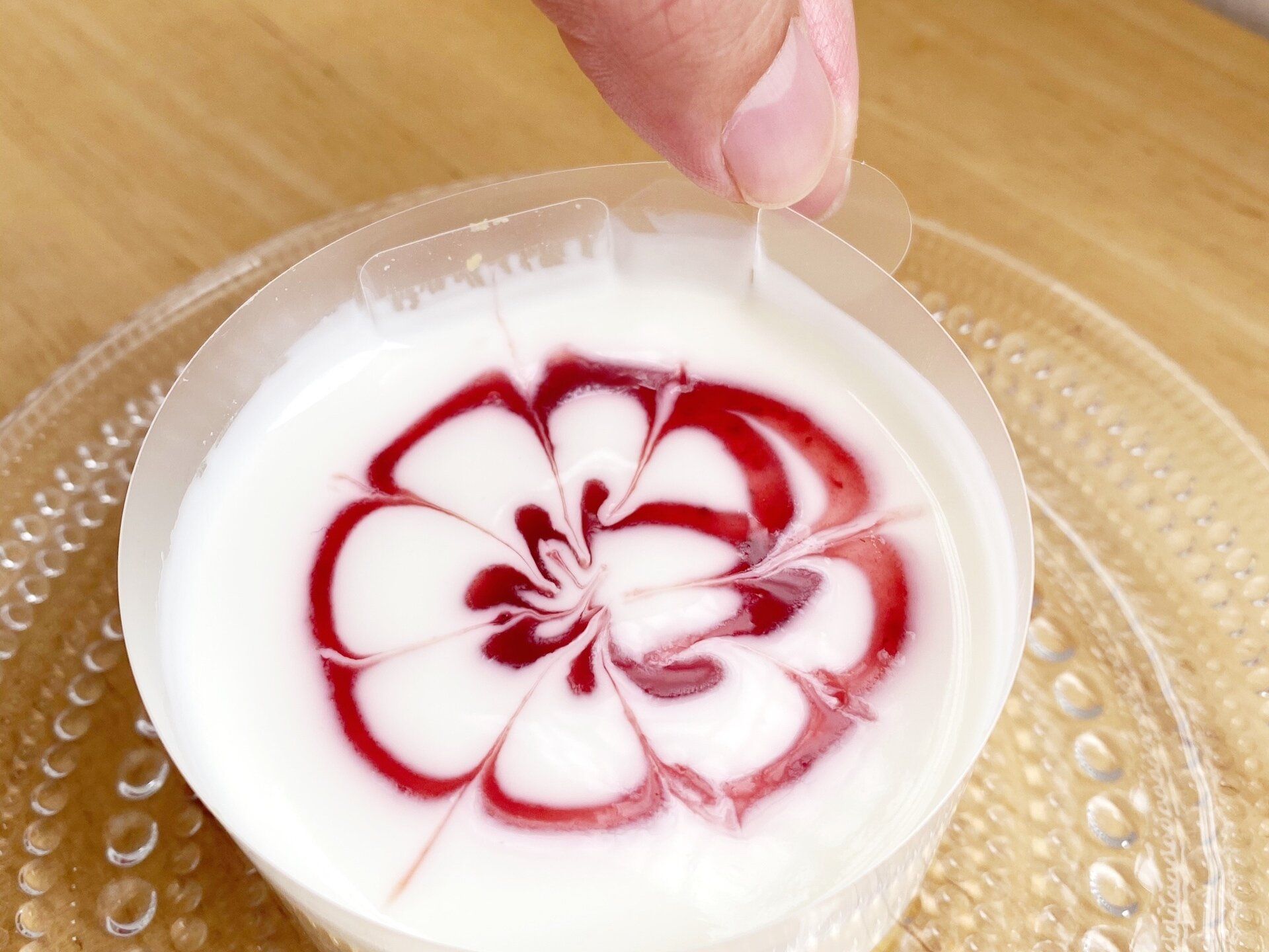 フィルムをゆっくり外すとクリームが綺麗に流れます。お店のような演出で、食べる前から楽しめるところも嬉しいポイントです◎