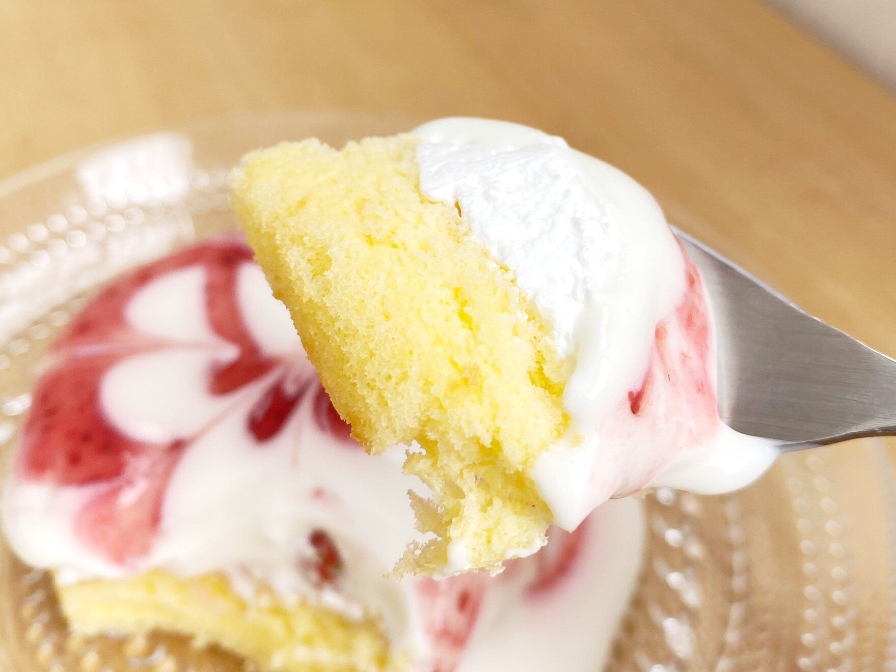 全てを一緒に頬張ってみると、クリームたっぷりの贅沢なショートケーキのようです!全体的に甘めですが、ガッツリ甘いスイーツが食べたい!という時にはオススメです。コンビニスイーツとしては価格設定が少し高く感じましたが、食べてみると見た目も味も大満足のスイーツでした。コンビニでこのレベルの商品が食べられるとは正直驚きました!