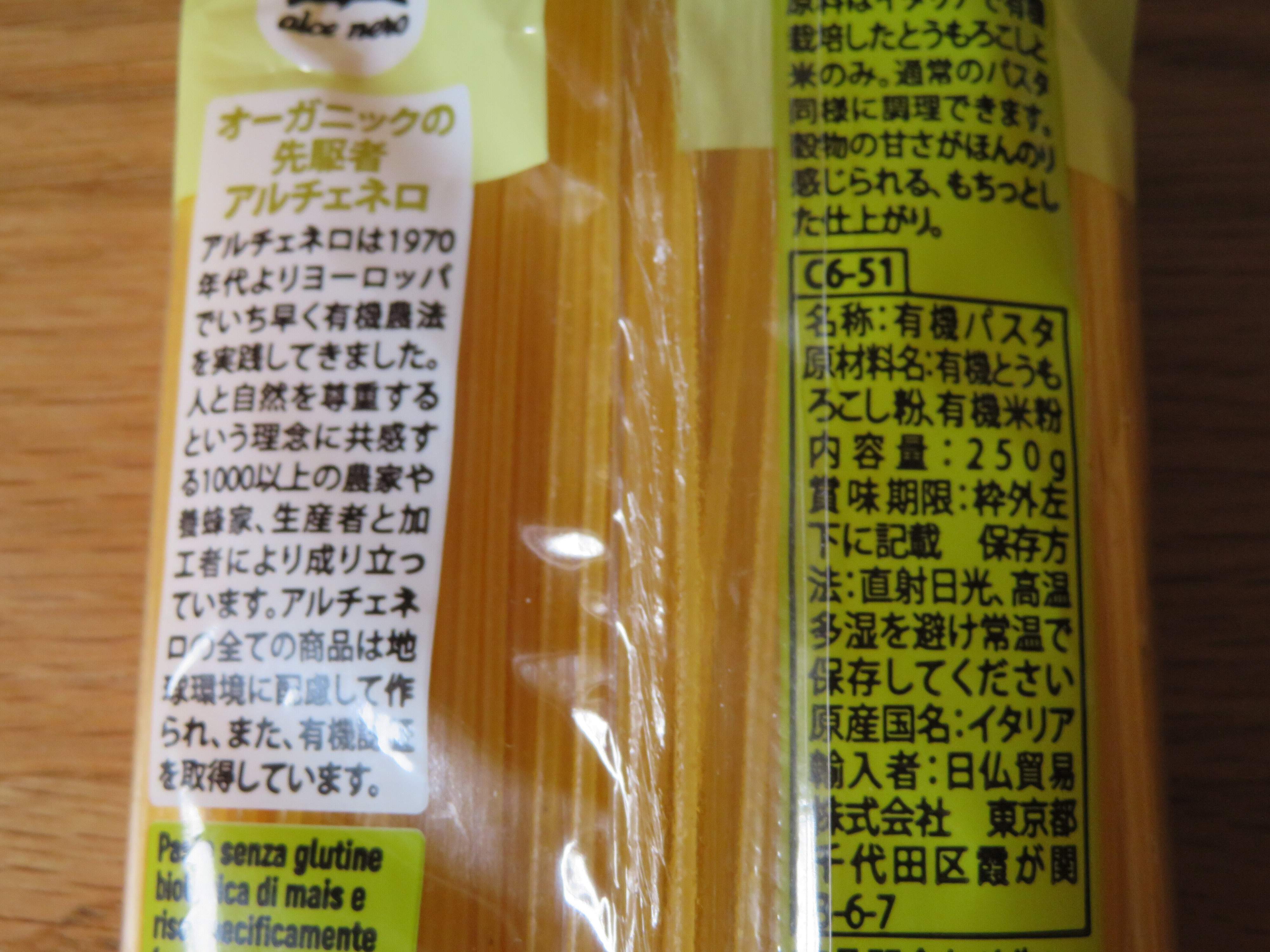 今回は、「有機グルテンフリー・スパゲティ」と「有機グルテンフリー・ペンネ」を購入。