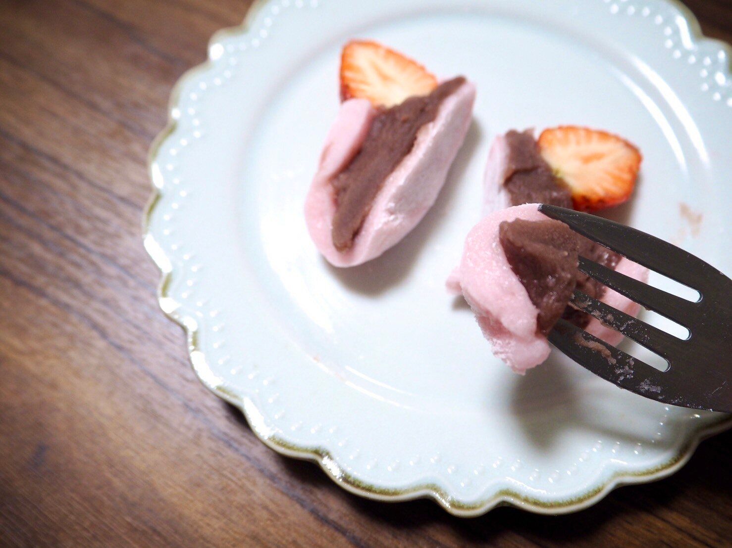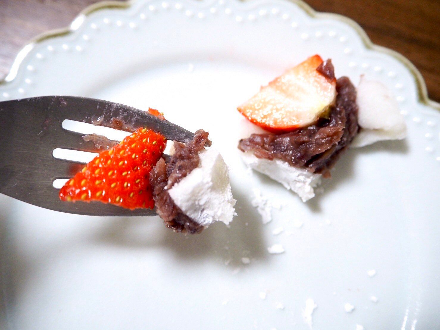 苺はやわらかく、じゅわーっと甘みが広がるタイプで、なめらかなこしあんとの相性がめちゃくちゃ良いです。