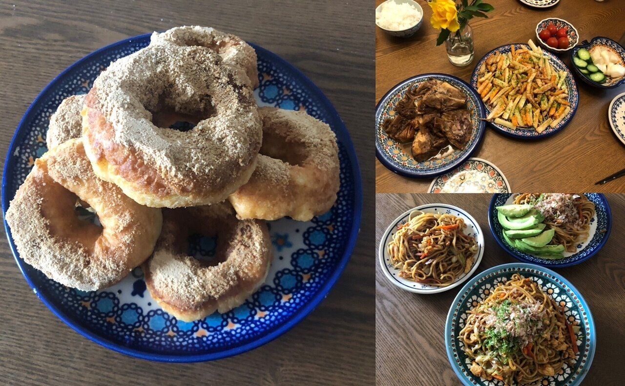 この日は土曜日でした。夫も朝ゆっくりだったので、朝からドーナツを揚げてドーナツモーニング!1箱78円になっていたホットケーキミックスと、2丁80円だった豆腐を使って豆腐ドーナツを作り、きなこをまぶしました。