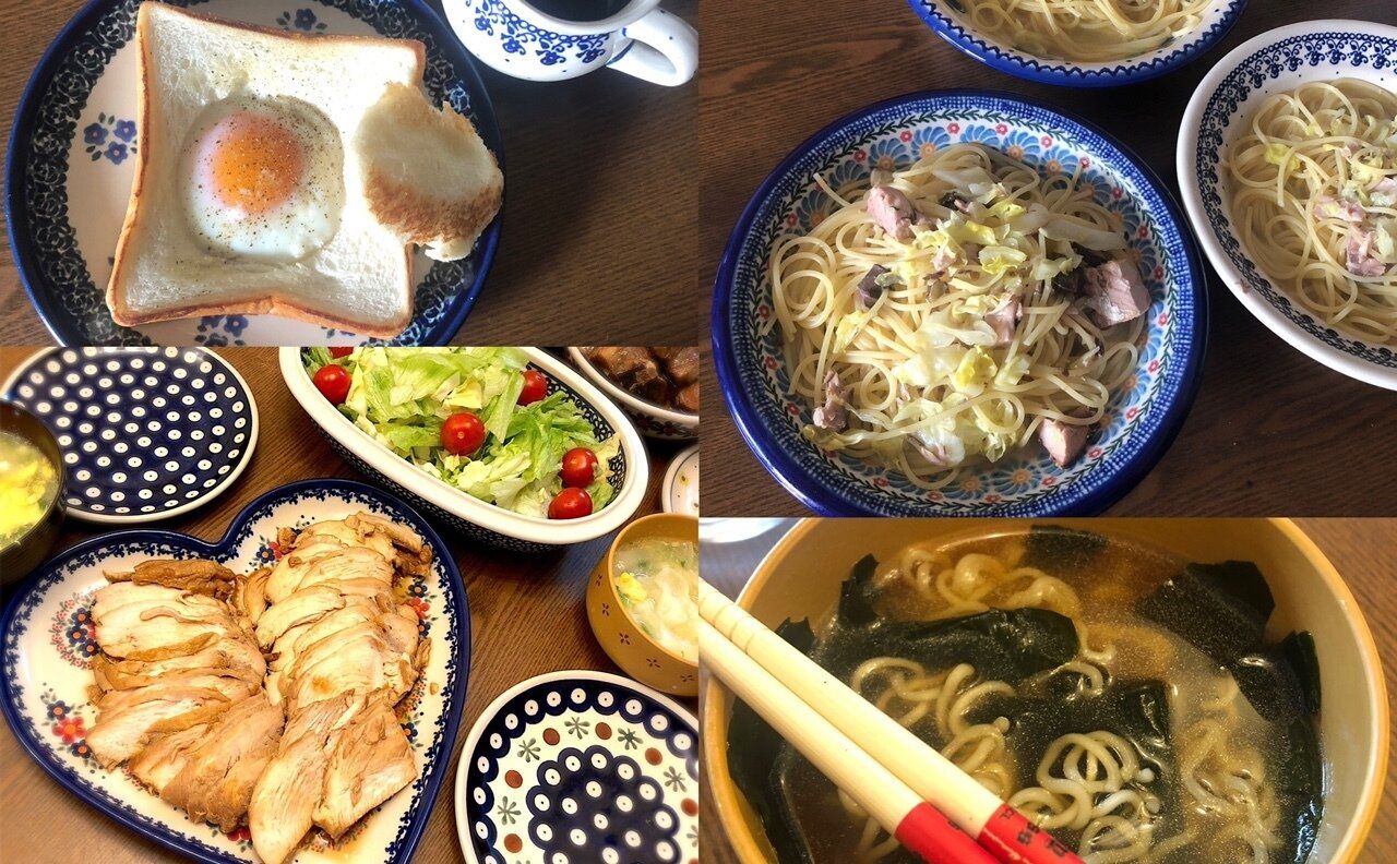 この日は日曜日。朝は食パンの真ん中をくり抜いて卵を落として焼いた「エッグインザバスケット」というトーストを食べました。テレビで紹介されていたメニューです。簡単で美味しいので結構よく作ります。お昼ご飯は、買い置きしておいたパスタと鯖缶、それにキャベツで鯖キャベツペペロンチーノにしました。娘はなぜかパスタを食べないので、ひとりだけわかめラーメンです。