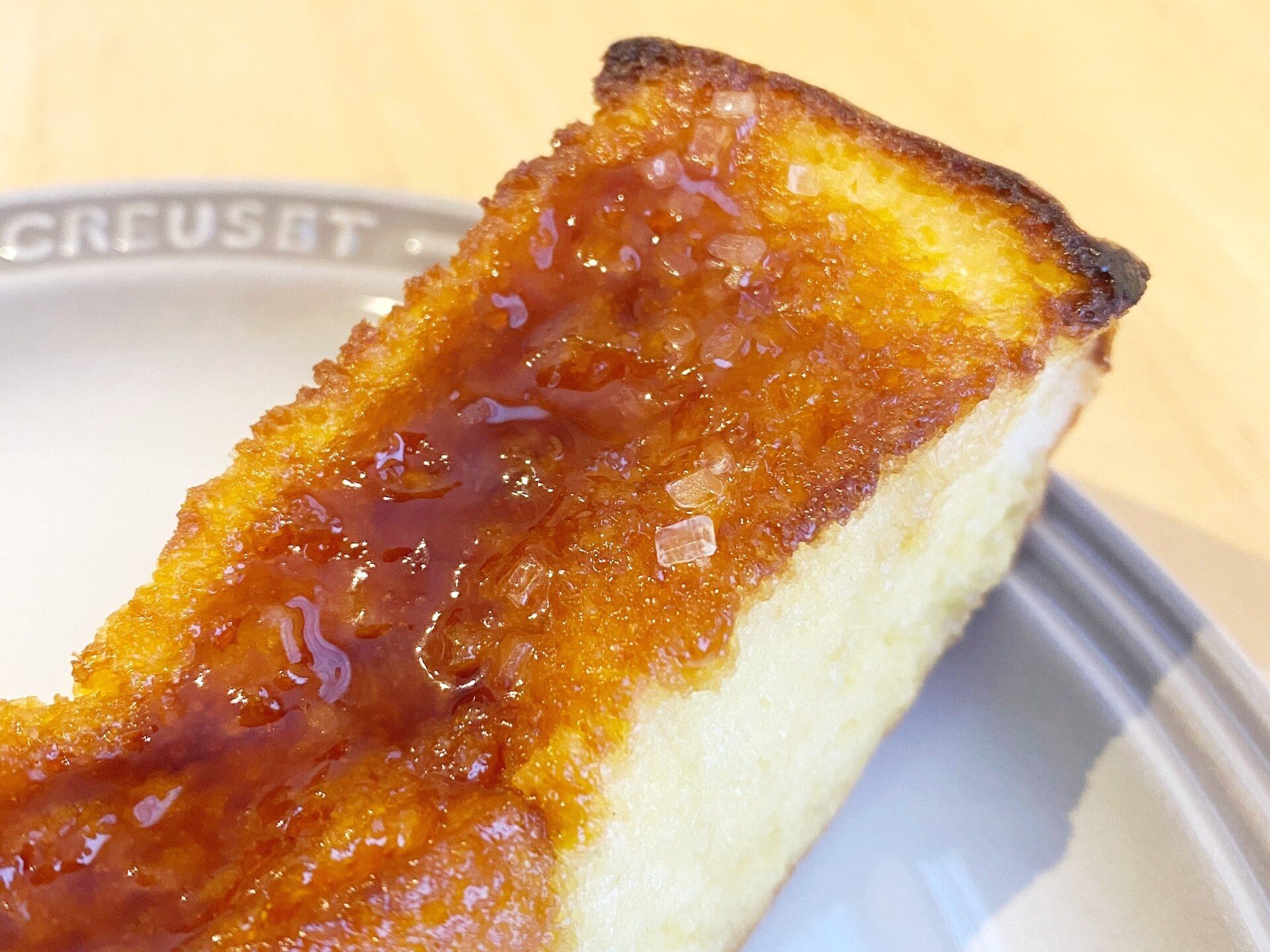 約2.5センチの厚みのブリオッシュ生地の表面にはたっぷりのカラメルソースとザラメがのっています。カラメルの甘い香りが食欲をそそります!