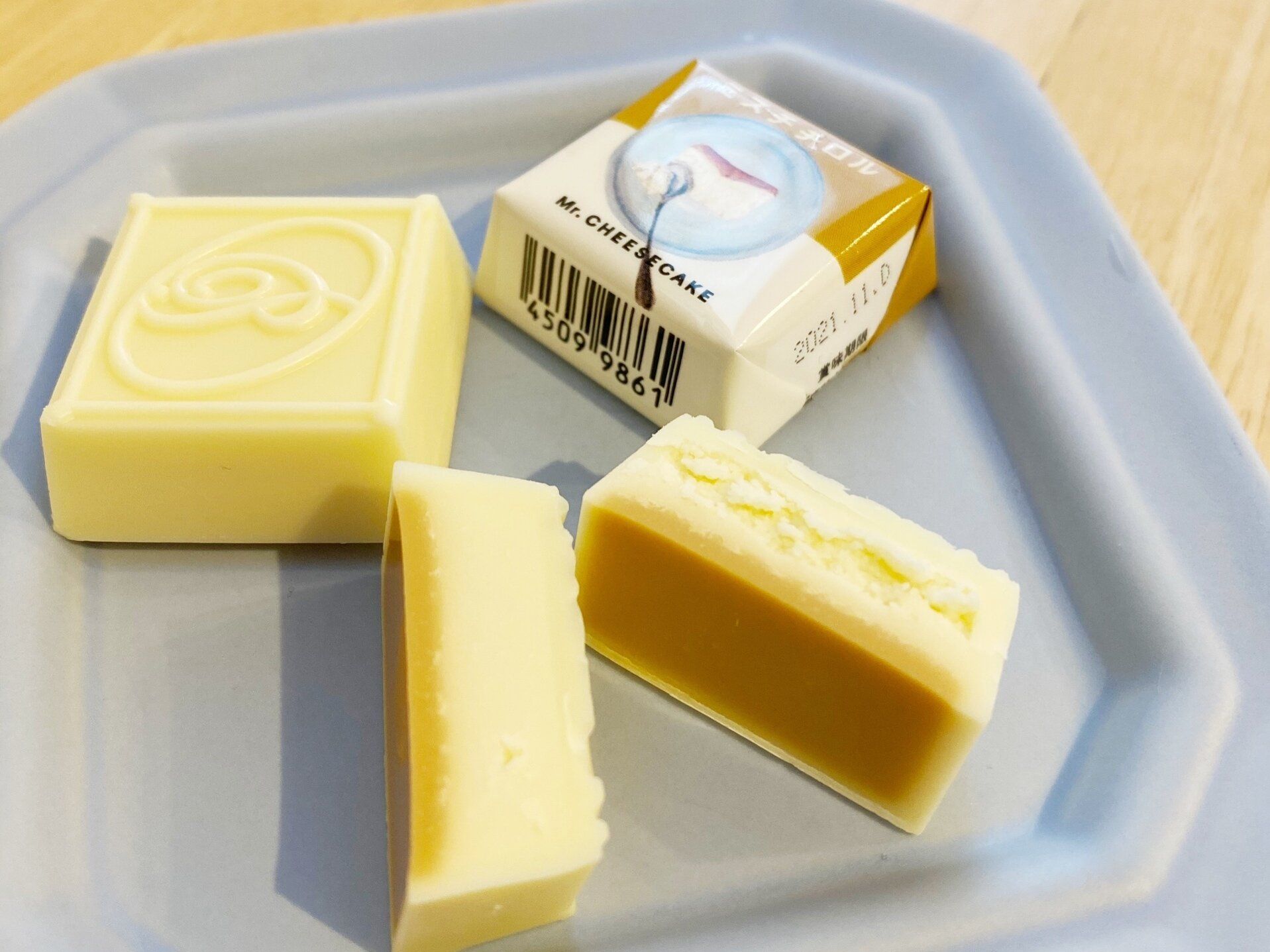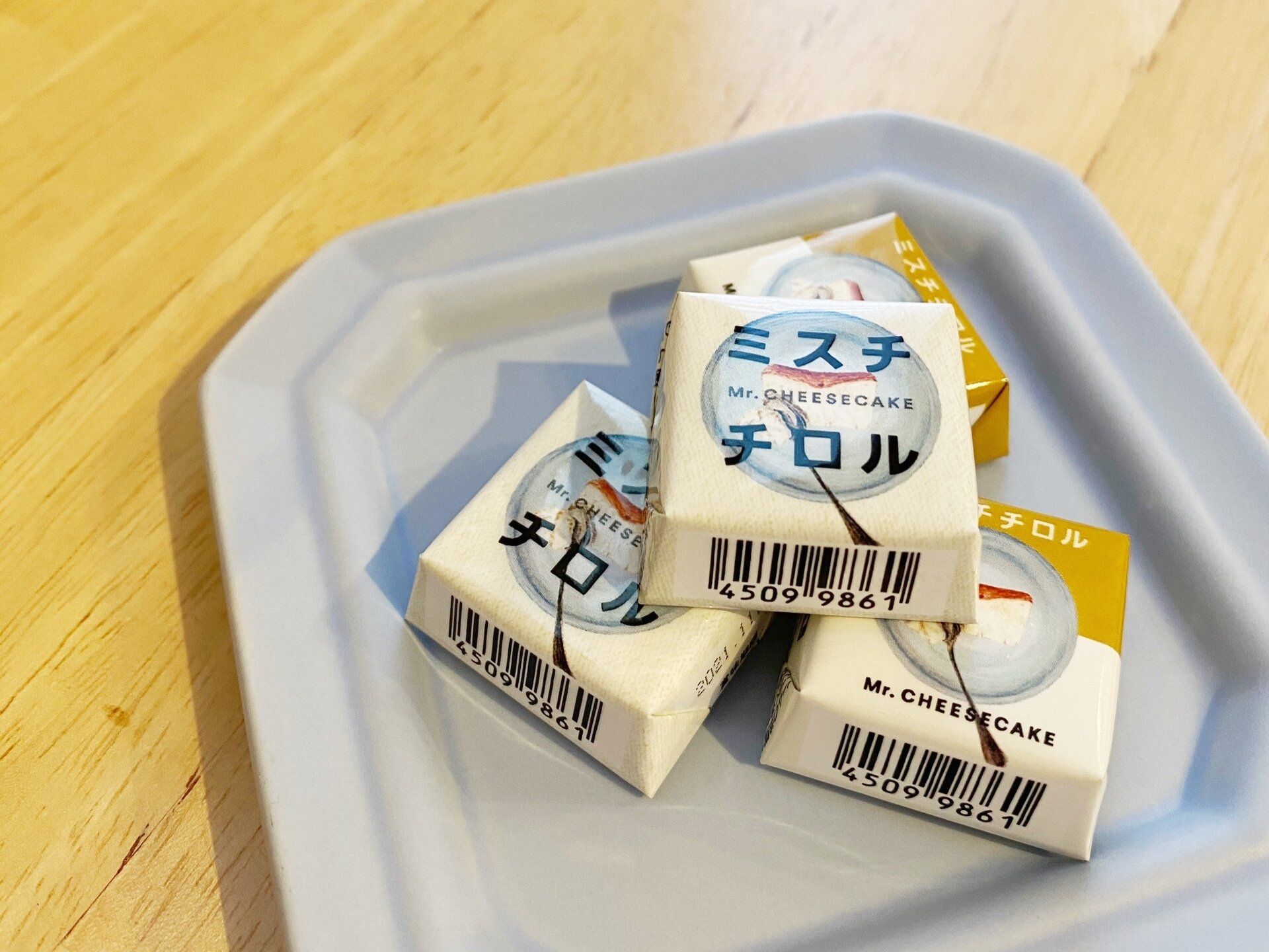 ビジュアルからチーズケーキが再現されていて、ミスターチーズケーキのロゴマークも入っています。パッケージは全部で3種類あるようです。