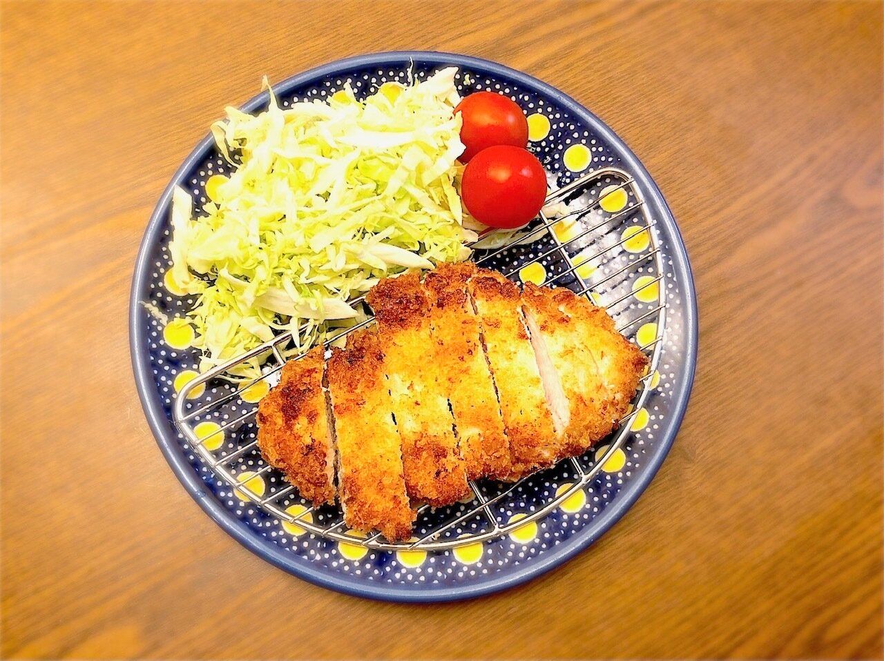 さっそく自家製のチキンカツをのせてみました。おお!いい!これを使うだけで、ちょっとお店みたいな雰囲気です。熱々を普通にお皿に盛り付けると、すぐに衣がしんなりしてきてしまいますが、これにのせるだけでサクサクが続きます。キャベツと接して水っぽくなることもなく、「なんのテクニックもいらないのにまるでお店の味?」とテンションが上がります。
