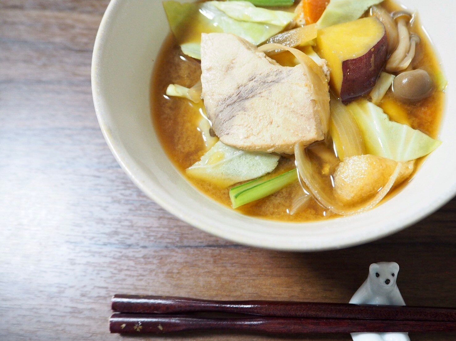 野菜に魚、キノコ類と、とにかく具材が多いので、汁物を飲んでいるというより味噌汁に浸った具材を食べているという感覚です。
