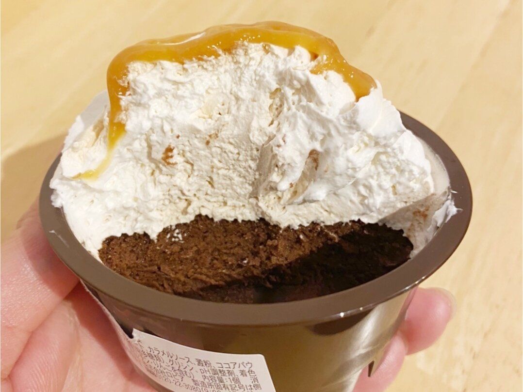 生クリーム、さらに上部のキャラメルソースまでも甘さ控えめときた!