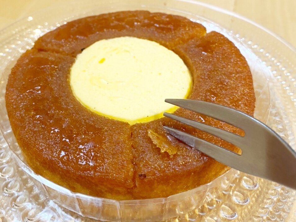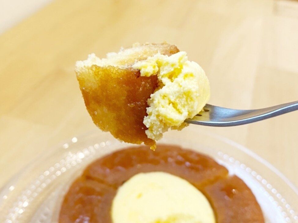 フォークを入れると表面のアメがパリッと割れます。