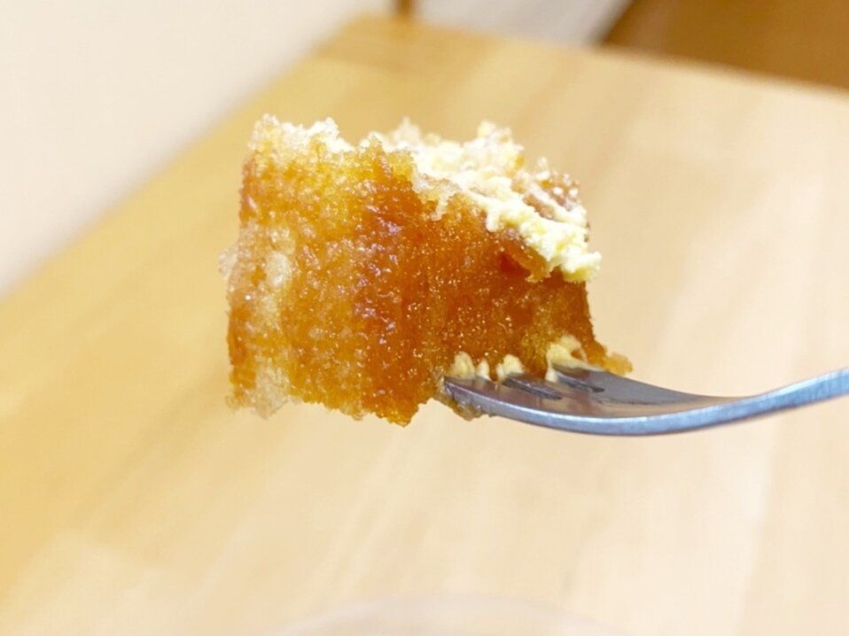 キャラメルが染み込んだバウムクーヘンはスーっとフォークが入っていく柔らかさ。
