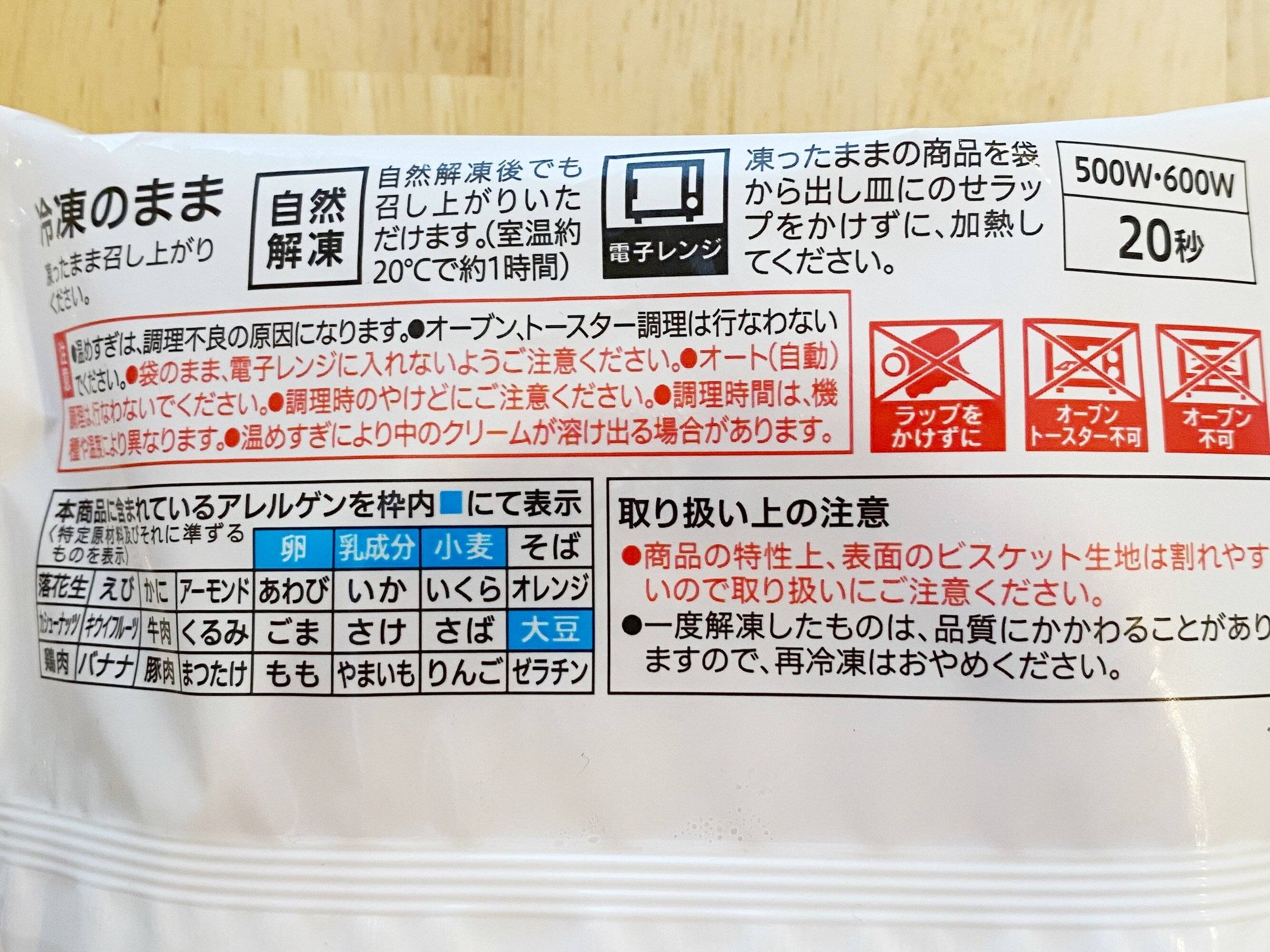 買ってきた翌日に冷凍庫から出して、「さぁ、食べましょう!」とパッケージをよく見ると、【そのまま食べる】【常温で1時間待つ】【電子レンジで温める】の3つの方法が記載されていました。