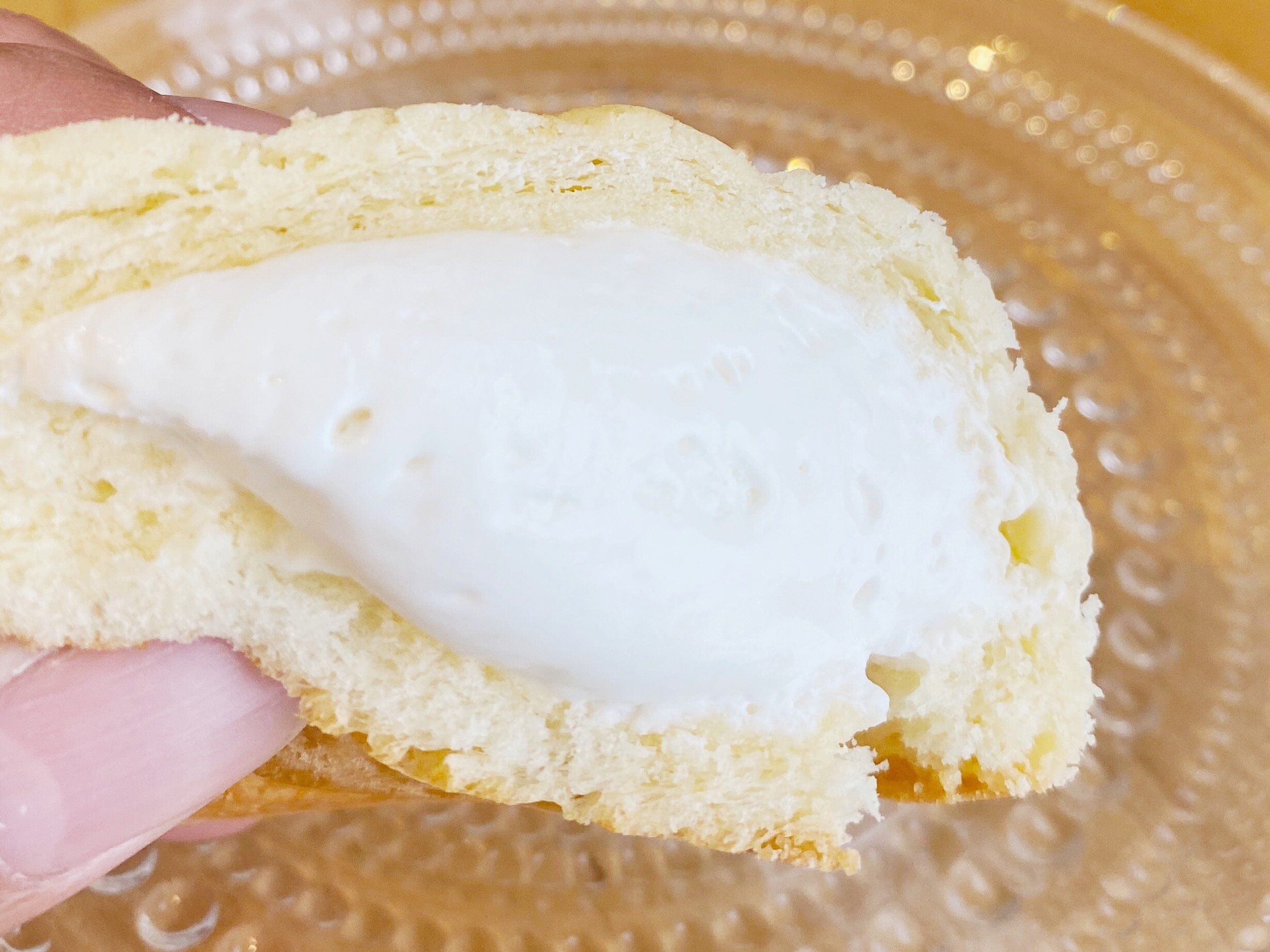 パン生地もクリームも心地よい冷たさで、全体的にかための食感です。生地が思いのほかしっとりしていて舌の上で溶けていくクリームと混ざり合いおいしいです。パンと言うよりはスイーツに近い印象です。