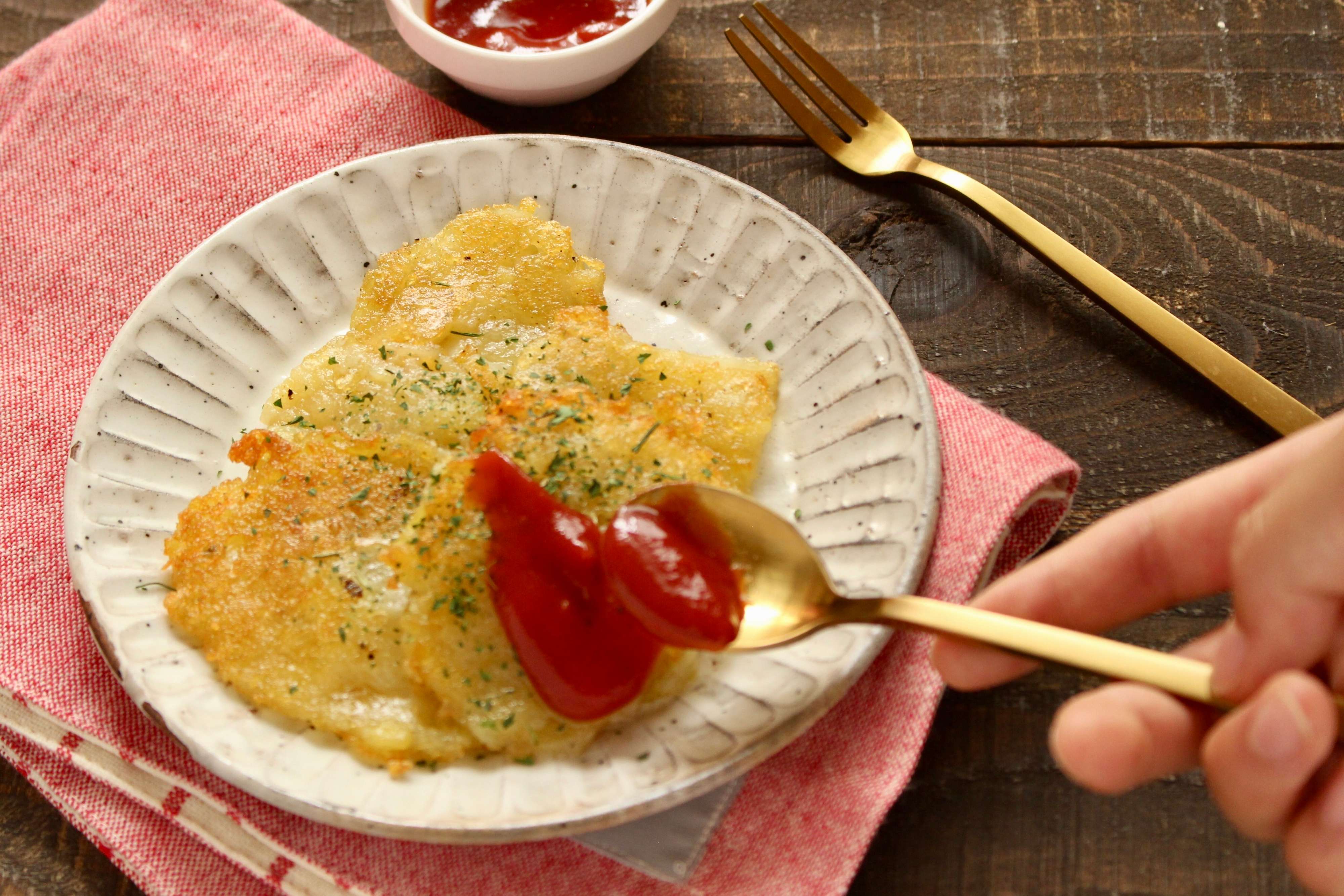 外はカリカリ!中はモチモチ!ひと手間かけた、食感がたまらないハッシュドポテトです。
