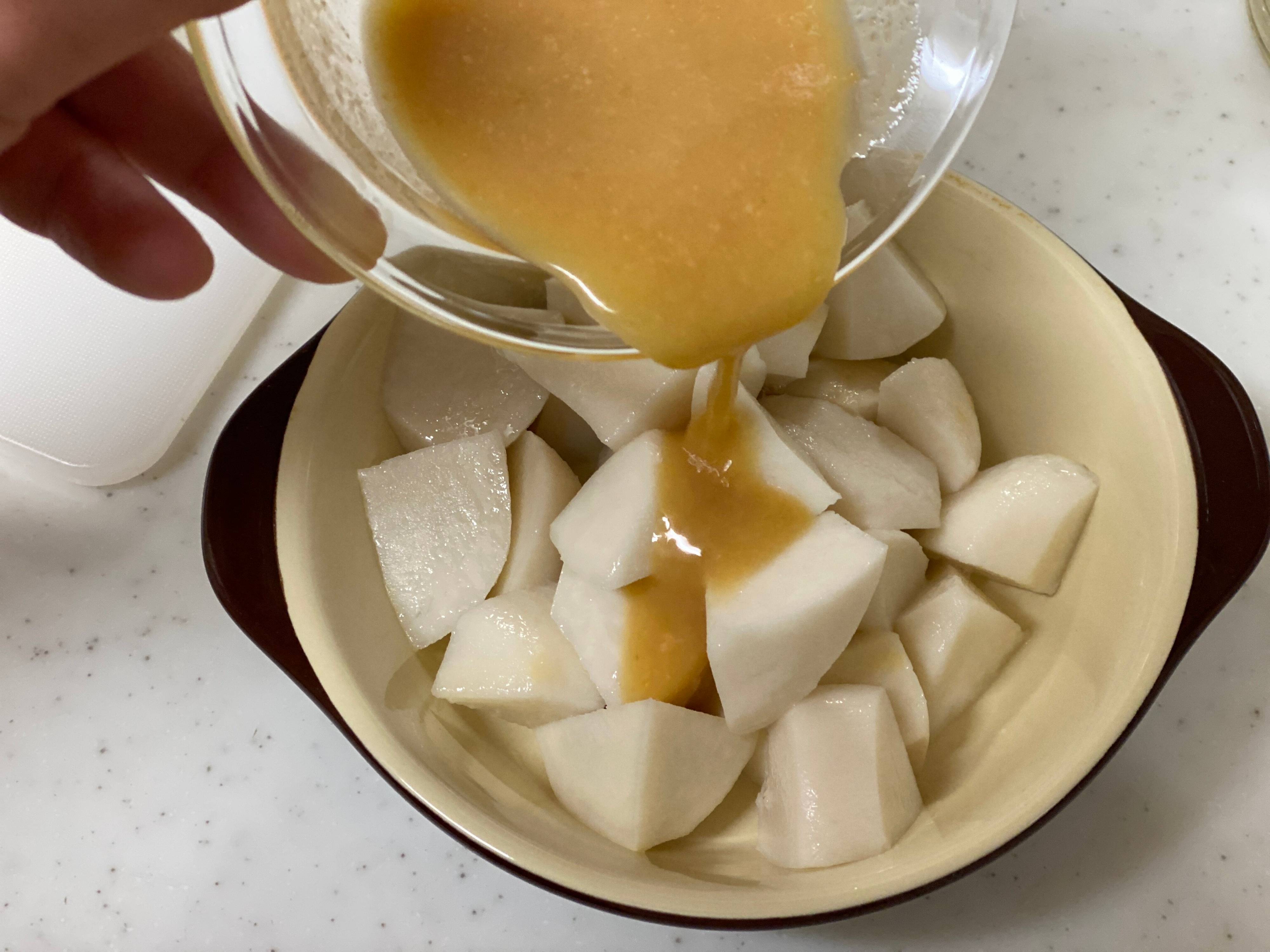 ポイントは「みんなのやさい さといも」を使うこと!すでに下処理&下茹でされているので、調理時間がかなり短縮されるんです。