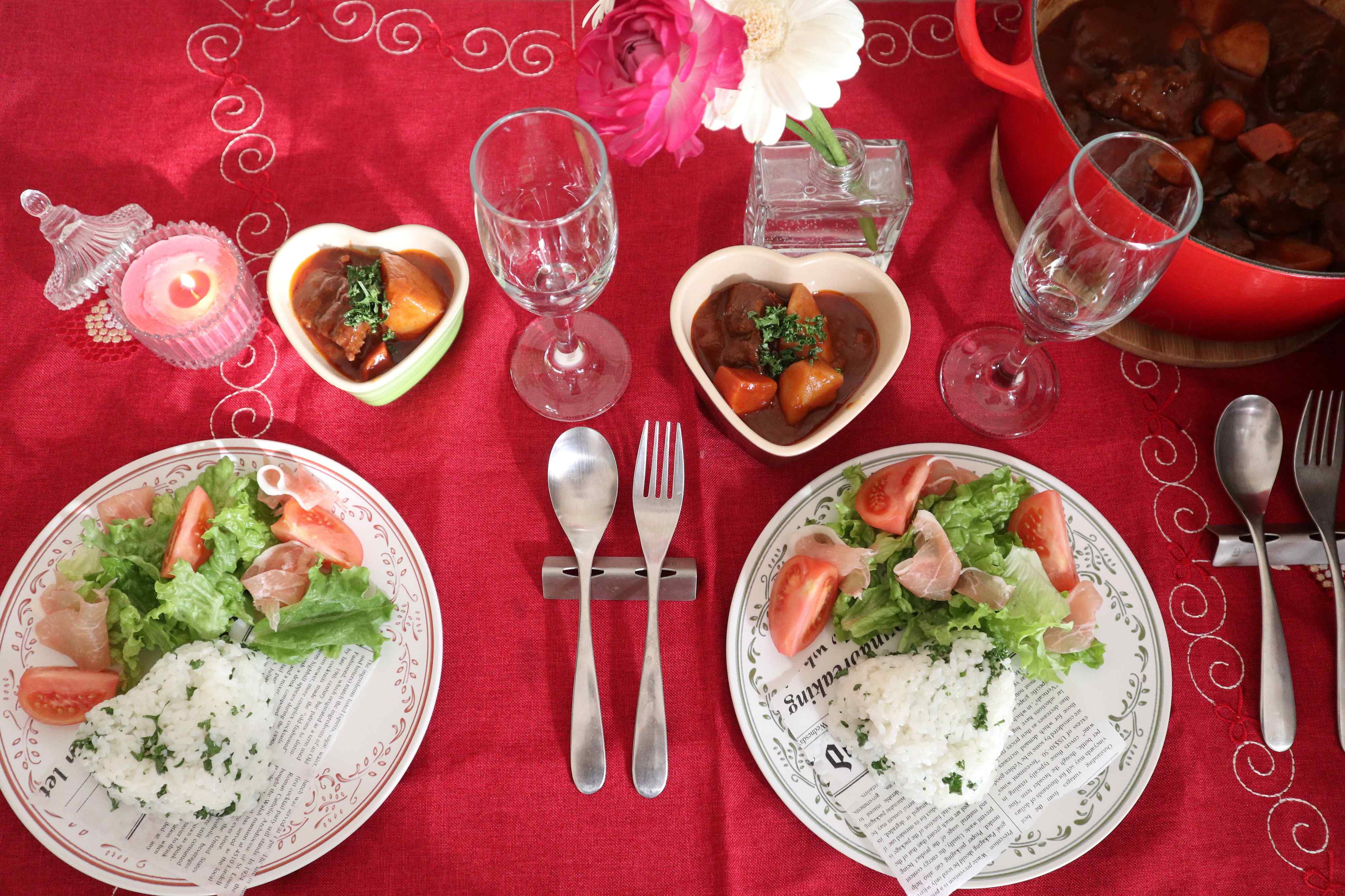 せっかく作ったビーフシチューなので、テーブルコーディネートもほんの少しだけこだわる。