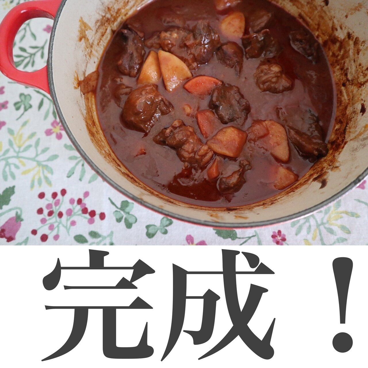 しっかりにこんだけことで旨みが凝縮された旨みたっぷりのビーフシチューの完成です。