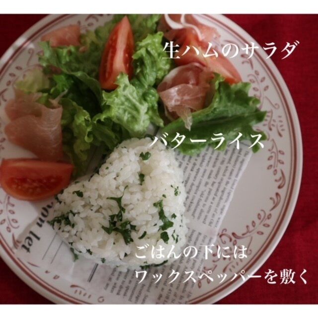 バターライス、生ハムのサラダ。