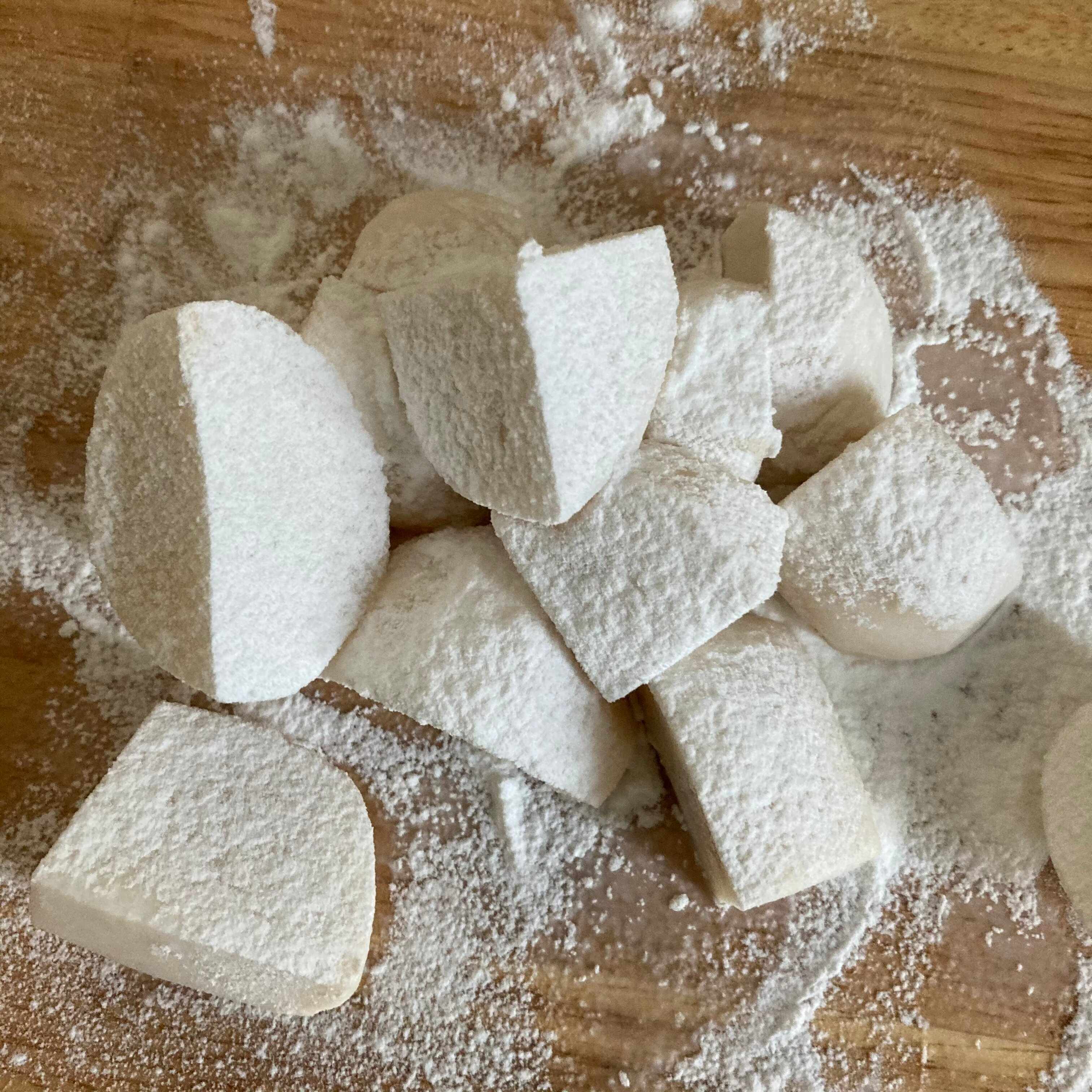 2、下処理済みの里芋が冷めたら、薄力粉(米粉)を全体にまぶします。