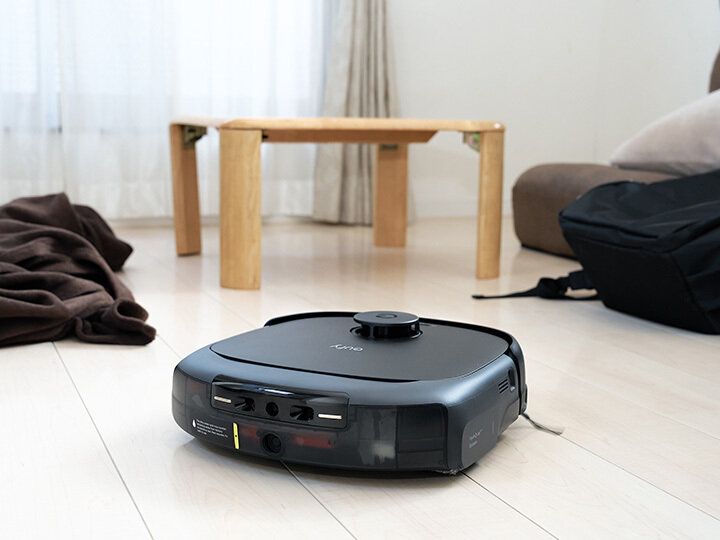 「Ankerの全自動ロボット掃除機は、吸引だけでなく水拭きまでしてくれ、さらにゴミ収集、モップ洗浄、温風乾燥、洗剤の自動投入まですべて自動で完結。四隅のゴミもしっかりキャッチしてくれます。もちろん、フローリングとカーペットも自動感知。床面の形状に合わせて対応してくれるのも◎!