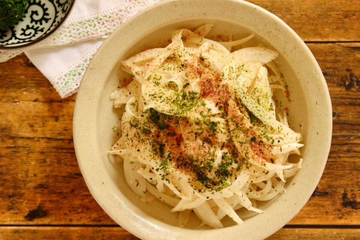 お好み焼き風味!「新玉ねぎのマヨポンサラダ」