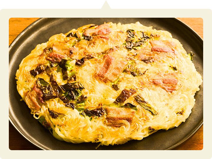 へらで押さえるようにしながら全体をカリッと焼き上げることで、外はサクサク、中はもっちりの極上食感に!