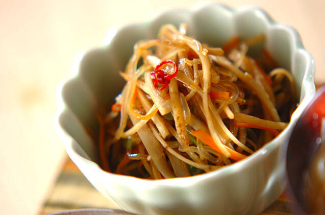 「しらたきのきんぴら」では、ごぼうといっしょにしらたきを使ってきんぴらを作ります。レシピでは通常のしらたきを使用していますが、冷凍しらたきを使えば、コリコリした食感がごぼうの食感を邪魔せずによく合います。
