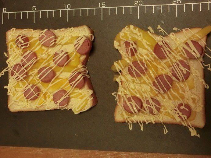 バターの代わりにマヨネーズやケチャップを塗ってもOK。具材の上にピザ用チーズを乗せたり、マヨネーズを乗せてもいいです。