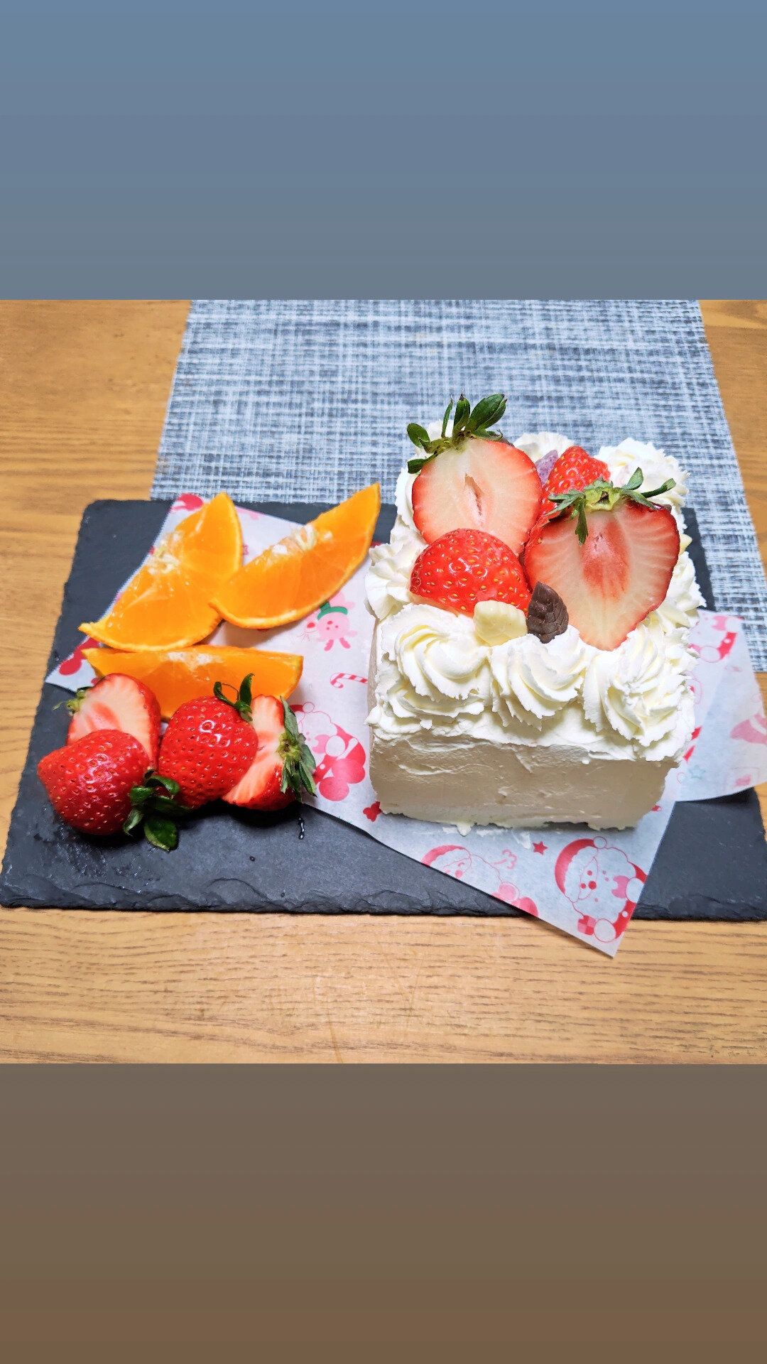 ケーキの横にフルーツを添えて