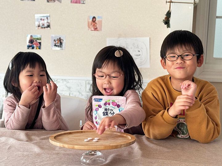 「家族みんなで続けられるのもいいですね!」というサンキュ!アンバサダーのイザベルさん(@izabel13ok)。「成長期の子どもたち3人とも偏食です。毎日同じような食事になりがちで栄養バランスについて頭を悩ませていました。食事の見直しはもちろんですが、気になっていた『親子de 鉄分』を食べてみると、『プルーン風味は、ぶどうみたいな感じでおいしい!』と子どもたち3人とも喜んでいます!」