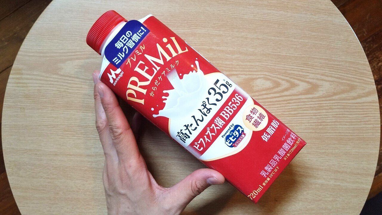パッケージ中央には「高たんぱく35g」 と「ビフィズス菌BB536」いう表記があり、一般的な牛乳にはない特徴が強く打ち出されていました。