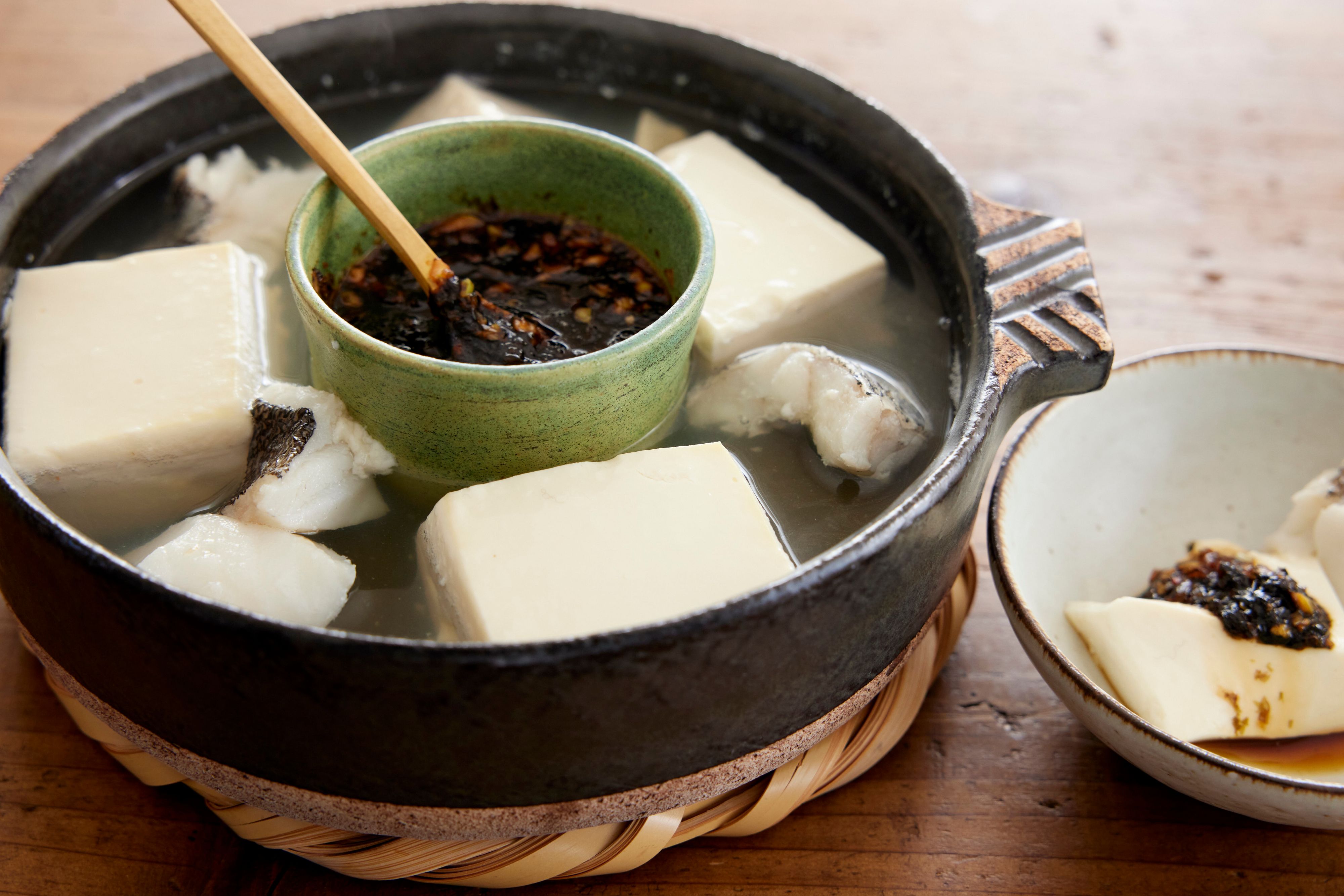 2 ふたをしてごく弱火で7~8分、豆腐が温まるまで煮る。器にBを入れ、煮汁適量を加えてのばし、豆腐とたらをつけながら食べる。