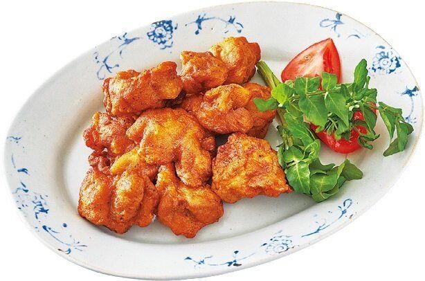 塩こうじに漬け込んだ若鶏を、赤坂璃宮のシェフ直伝の特製しょうゆだれと香辛料で味つけ。「手作業で粉をまぶした薄ごろもで、専門店のおいしさです」(山)