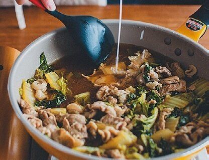 豚こま切れ肉、白菜は食べやすい大きさに切り、フライパンにサラダ油適量を中火で熱して豚肉を炒める。肉の色が変わったら白菜を加え、酒大さじ2を回し入れて蒸し焼きにする。だししょうゆ(左を参照)1/2カップ、水1 1/2カップを加えて3~4分煮たら、水溶き片栗粉(片栗粉大さじ1を同量の水で溶いた物)でとろみをつける。