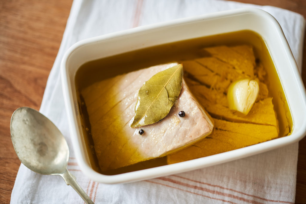 淡白な鯛の味がうま味と塩気をまとい、ねっとりとした食感へ変化するのを楽しんでみて。