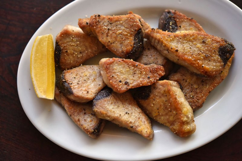 カリッと揚げたてに、パクチーとレモンを添えたら完成です。