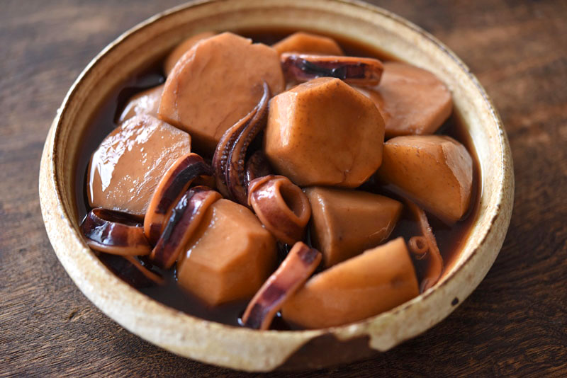 いかのうま味が里芋に染み込み、里芋のぬめりで汁までおいしく堪能することができますよ。