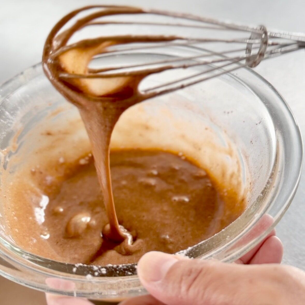 ・ ココア生地を作る時、泡だて器でゆっくり混ぜてしまうとダマなり膨らみも悪くなります。一気に手早く混ぜましょう。