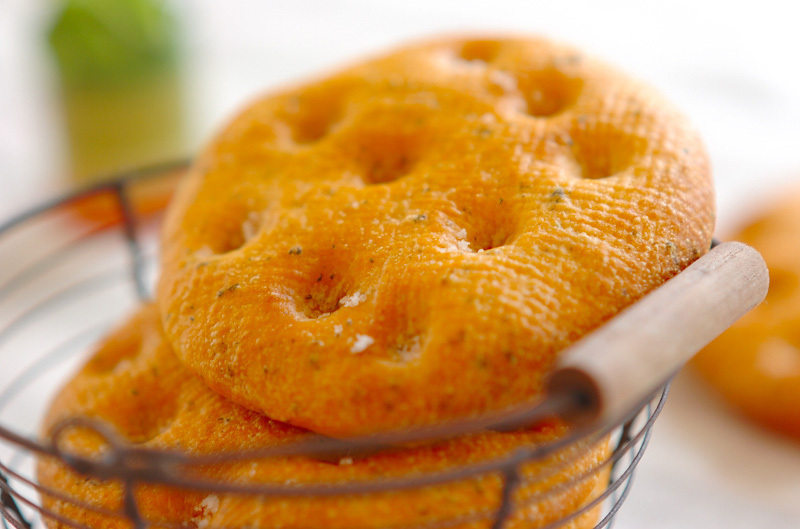 食べるときのポイントでもおすすめした、トマトジュースを使って作るフォカッチャのレシピです。ほんのりオレンジ色に仕上がるので彩りも良く、トマトの酸味や香りがアクセントになるレシピとなっています。